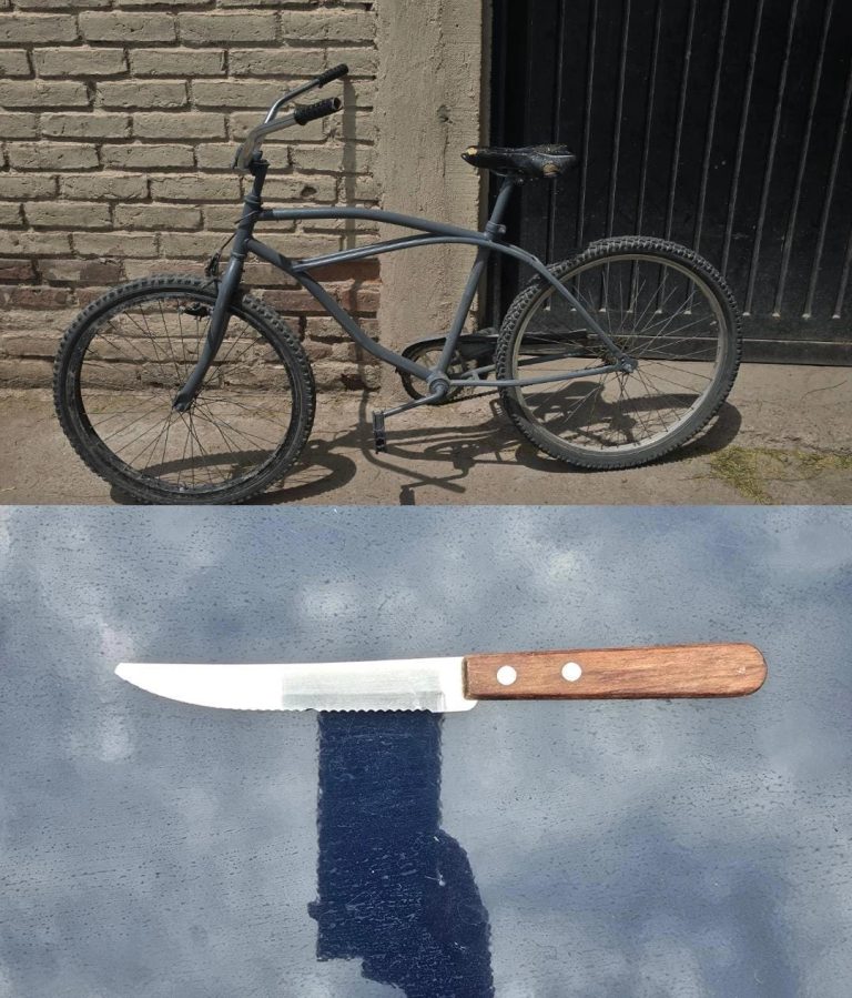 Minutos más tarde, en Julio Roca y Higuerita, la rápida intervención policial permitió detener a un hombre de 32 años acusado de robo, a quien se le secuestraron un cuchillo y una bicicleta.