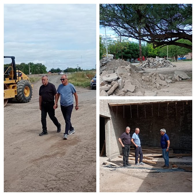 La visita continuó en el barrio Cristo Hermano, donde comenzaron las tareas de demolición de los antiguos veredines, que presentaban un marcado deterioro. Tras finalizar la perforación, ahora se trabaja en la reparación integral de los caminos internos de la plaza.